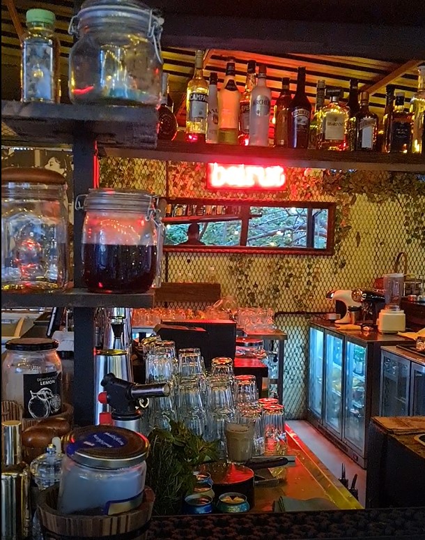 This cool new place is in the backyard of an Apartment in Achrafieh Beirut, and that is exactly why it was called that way. As my title says, this is a perfect place for you to chill and have some drinks in a friendly Garden. You can also order food or simply some bites to pair them with your cocktails.